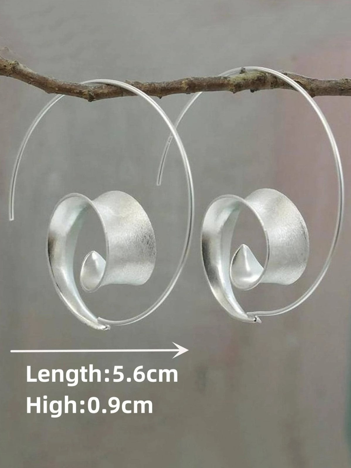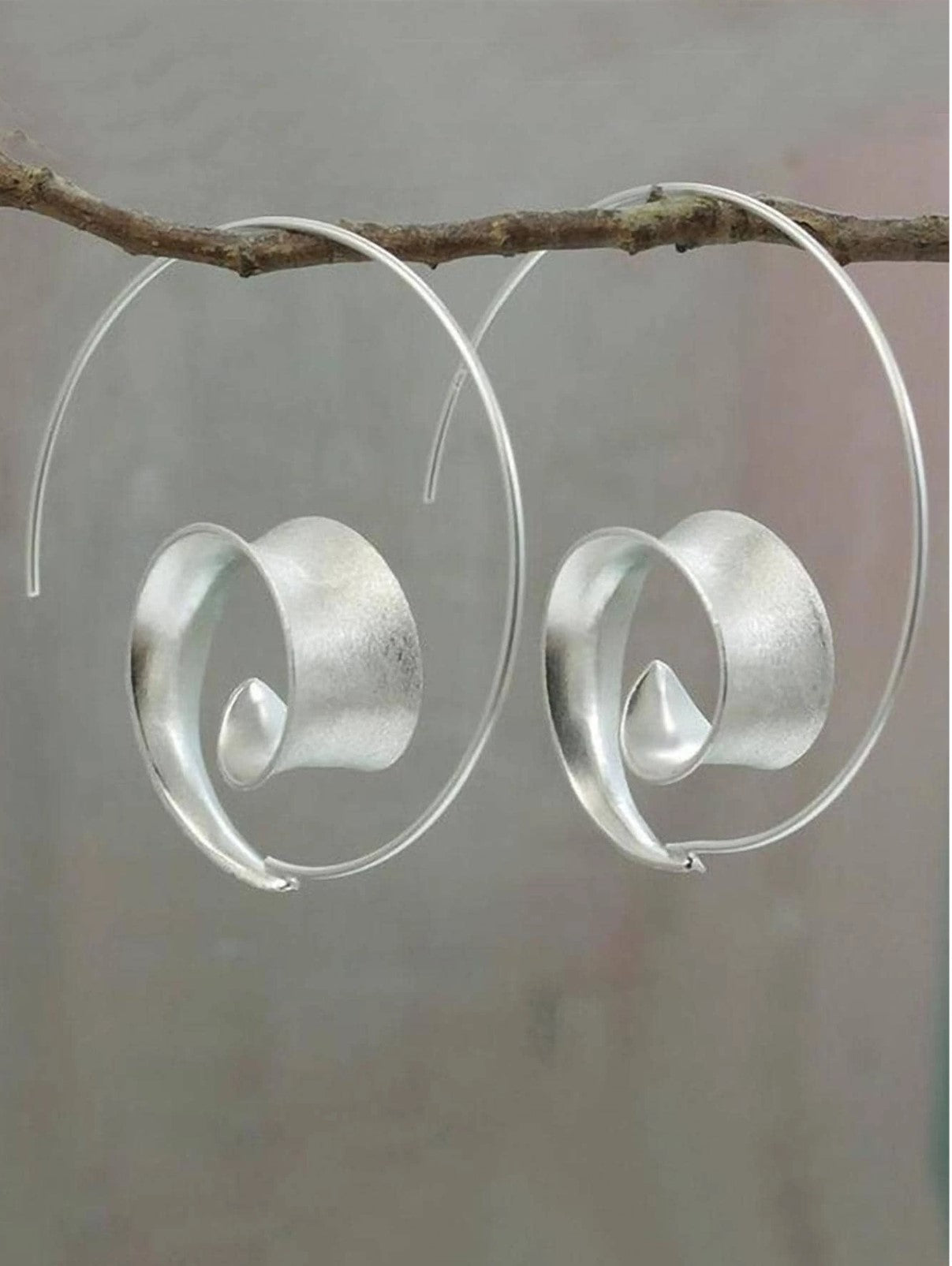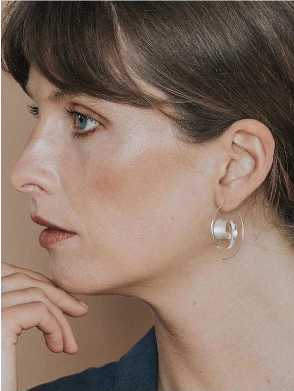 Silver hoop earrings with artistic, curved accents-modern, sleek, and effortlessly stylish.