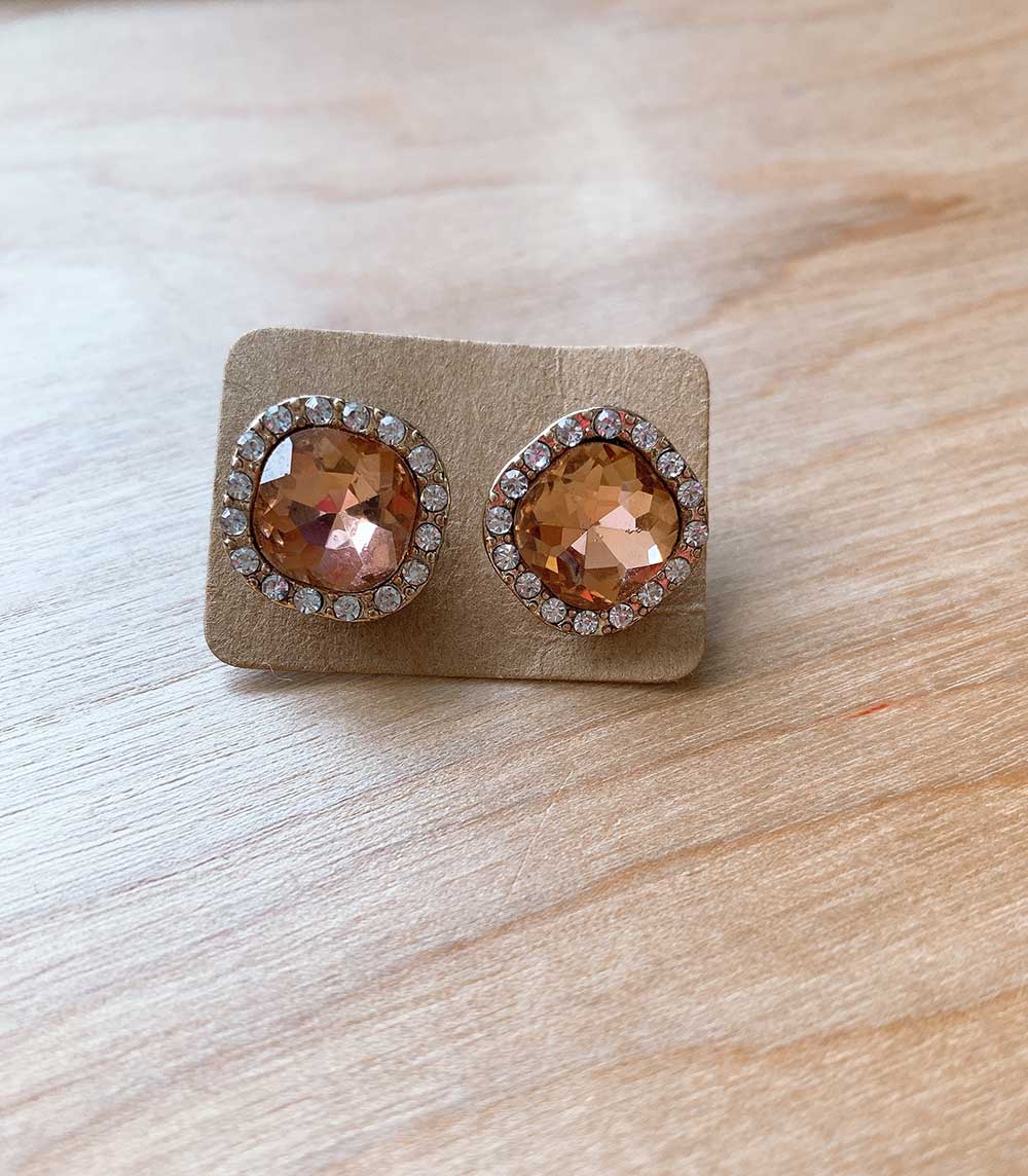 Amber-toned earrings framed by sparkling clear stones, exuding warmth and classic sophistication.