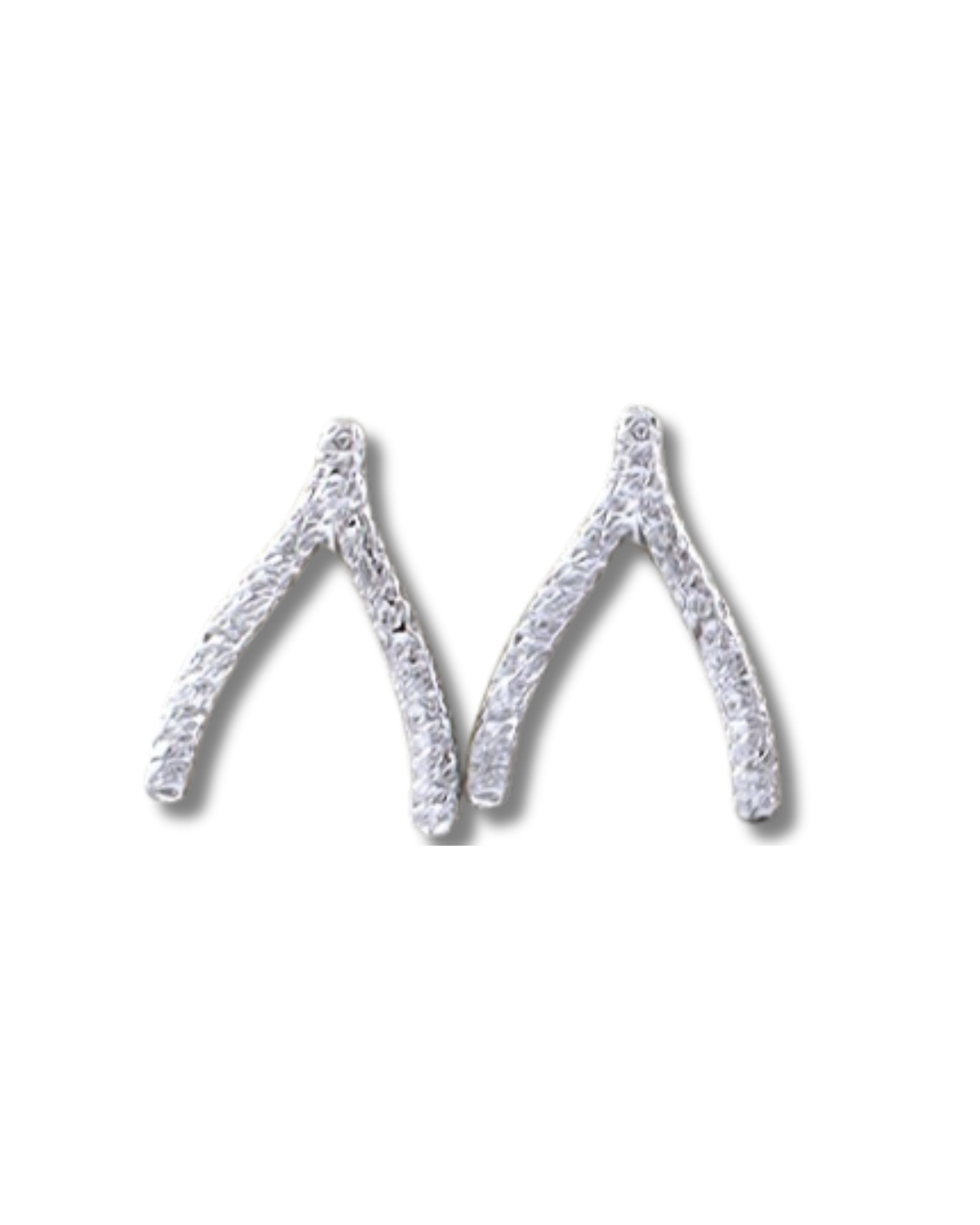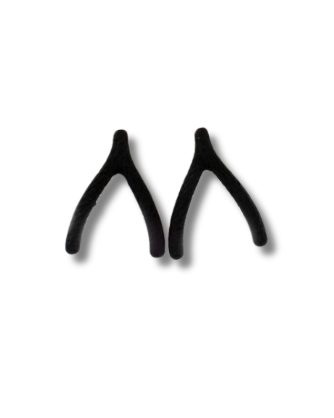 A minimalist wishbone-shaped design, crafted with a textured finish in elegant tones of silver, gold, and black for understated sophistication.