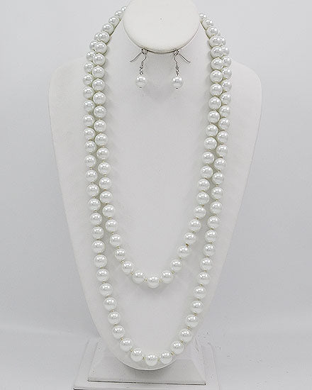 Elegantly layers two strands of lustrous white pearls, exuding timeless charm and refined sophistication with its graceful simplicity.