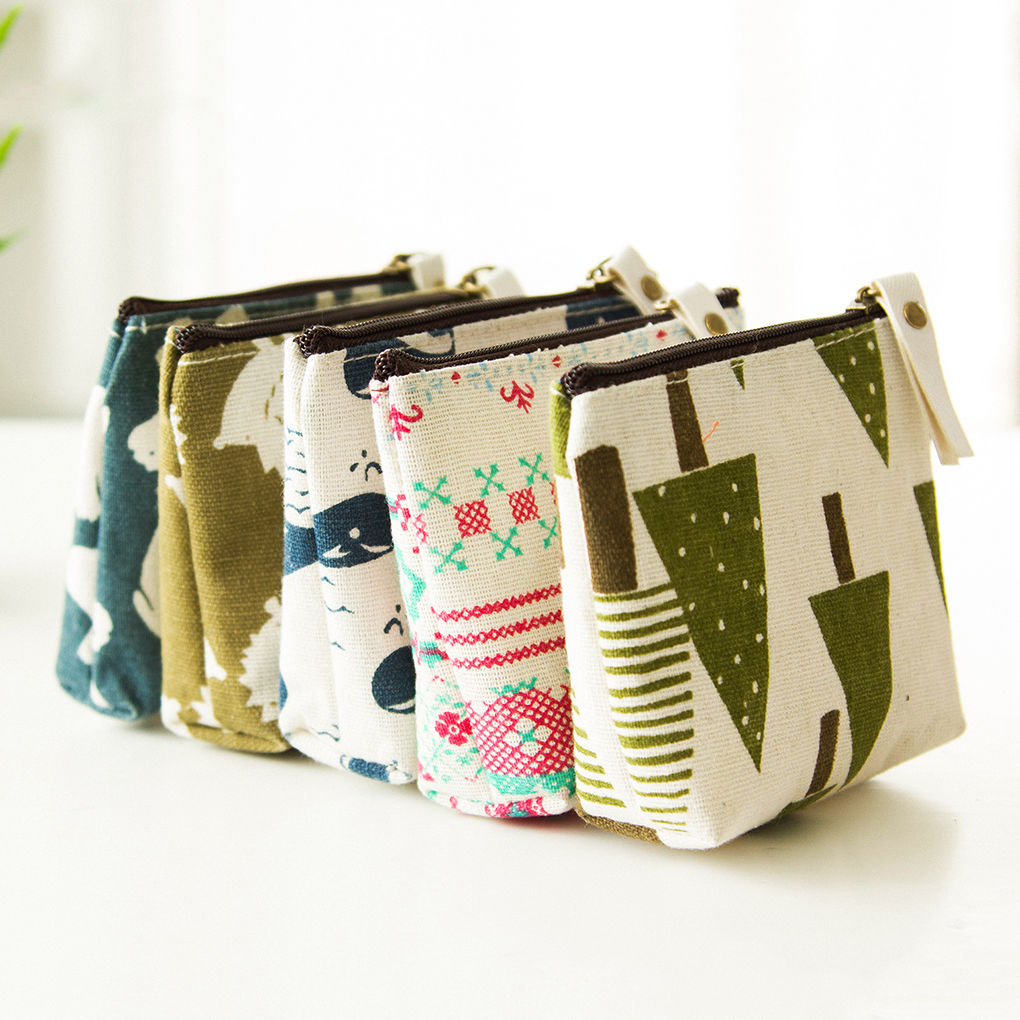 Colorful zippered pouches adorned with artistic patterns of animals and trees, blending practicality with charming elegance.